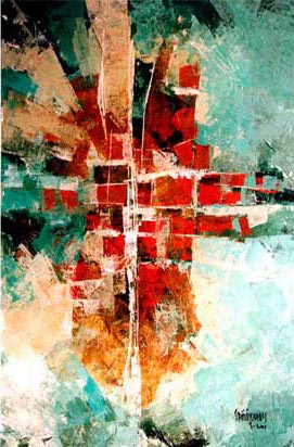 THE BLOSSMING OF JESUS_ 30_ x 42_, acryllic on canvas-