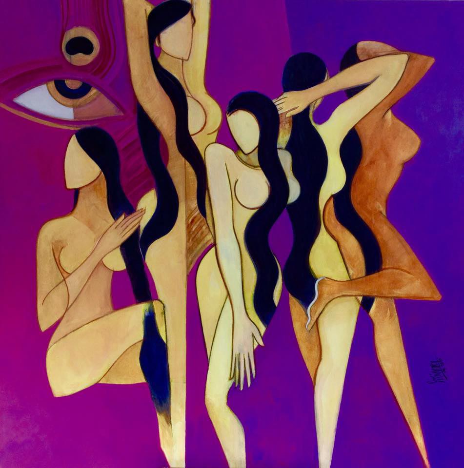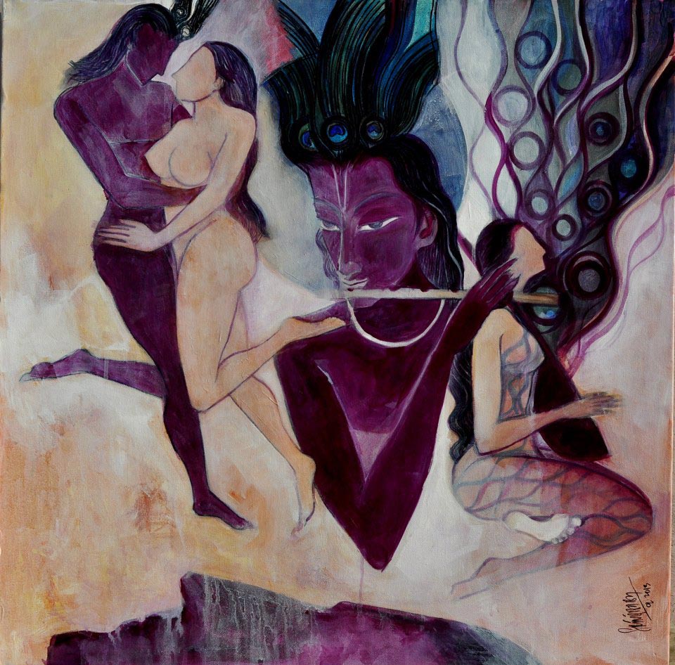 GOPIKA VASTRAPAHARANA OR JUST A TEENAGE CURIOSITY TO LOOK AT THE OPPOSITE SEX, acrylic on canvas, 48_ x 48_, mar'2015