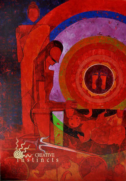 EMPEROR ASOKA’S CONFESSION BEFORE LORD BUDDHA _ 30_ x 42_, acryllic on canvas-