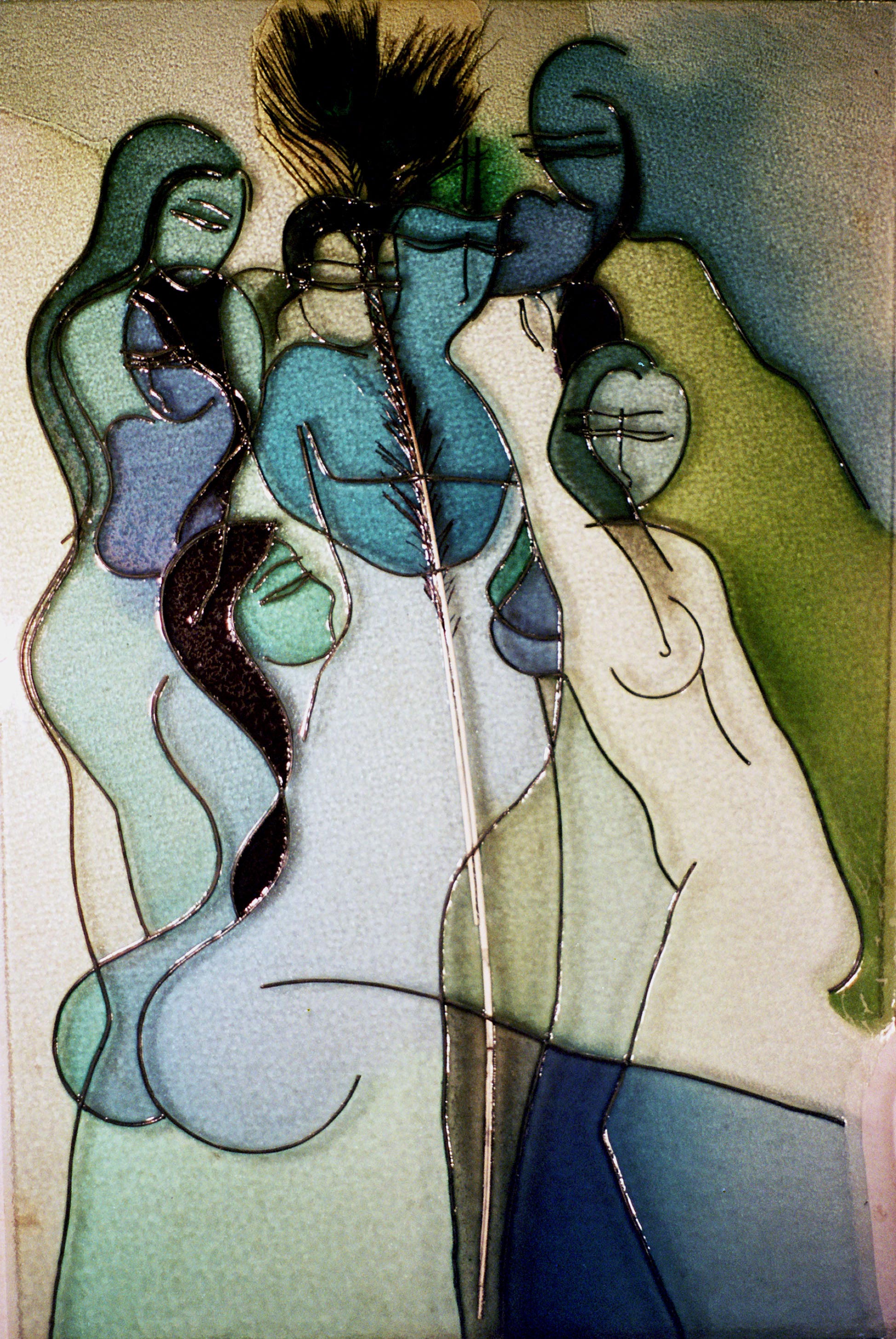 KRISHNA n GOPIS, 24_ x 36_, on GLASS