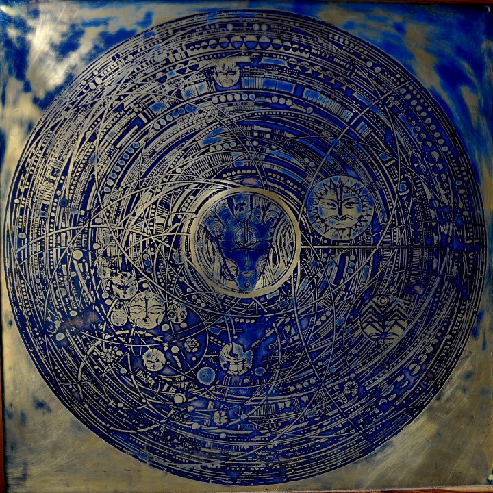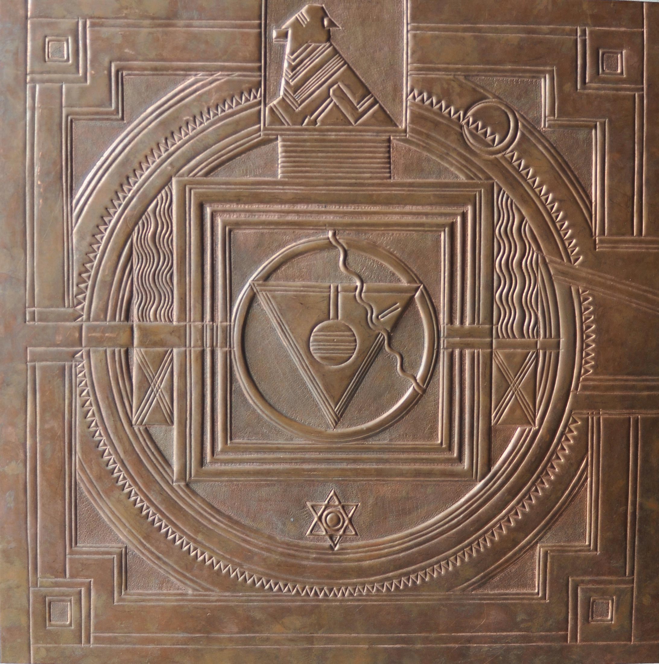 THE COSMIC ORDER OF CREATION AND ANNIHILATION_ 30_ x 30_ embossed copper sheet-