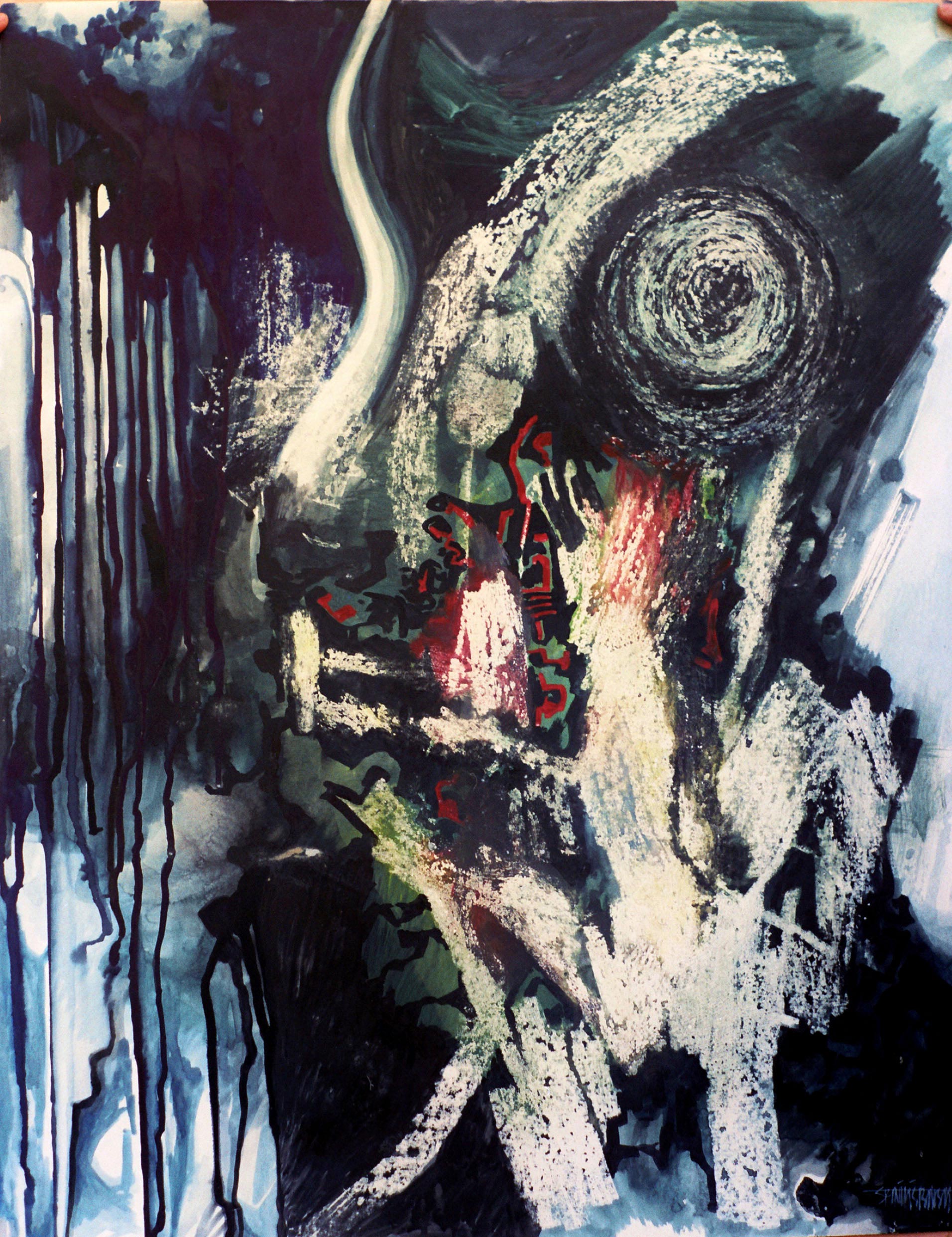 DEATH – THE ULTIMATE REALITY_ 22_ x 28_, mixed media on card board-